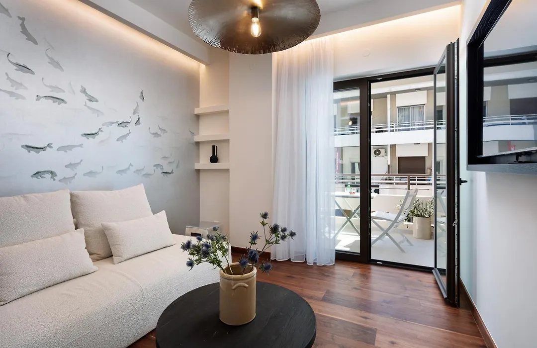 Tijdens een verblijf in 1-slaapkamer Sea Path III Chania City Center Luxury Suites kunnen gasten zich ontspannen op een terras op 12 minuten lopen van de Moskee van Kioutsouk Hassan.